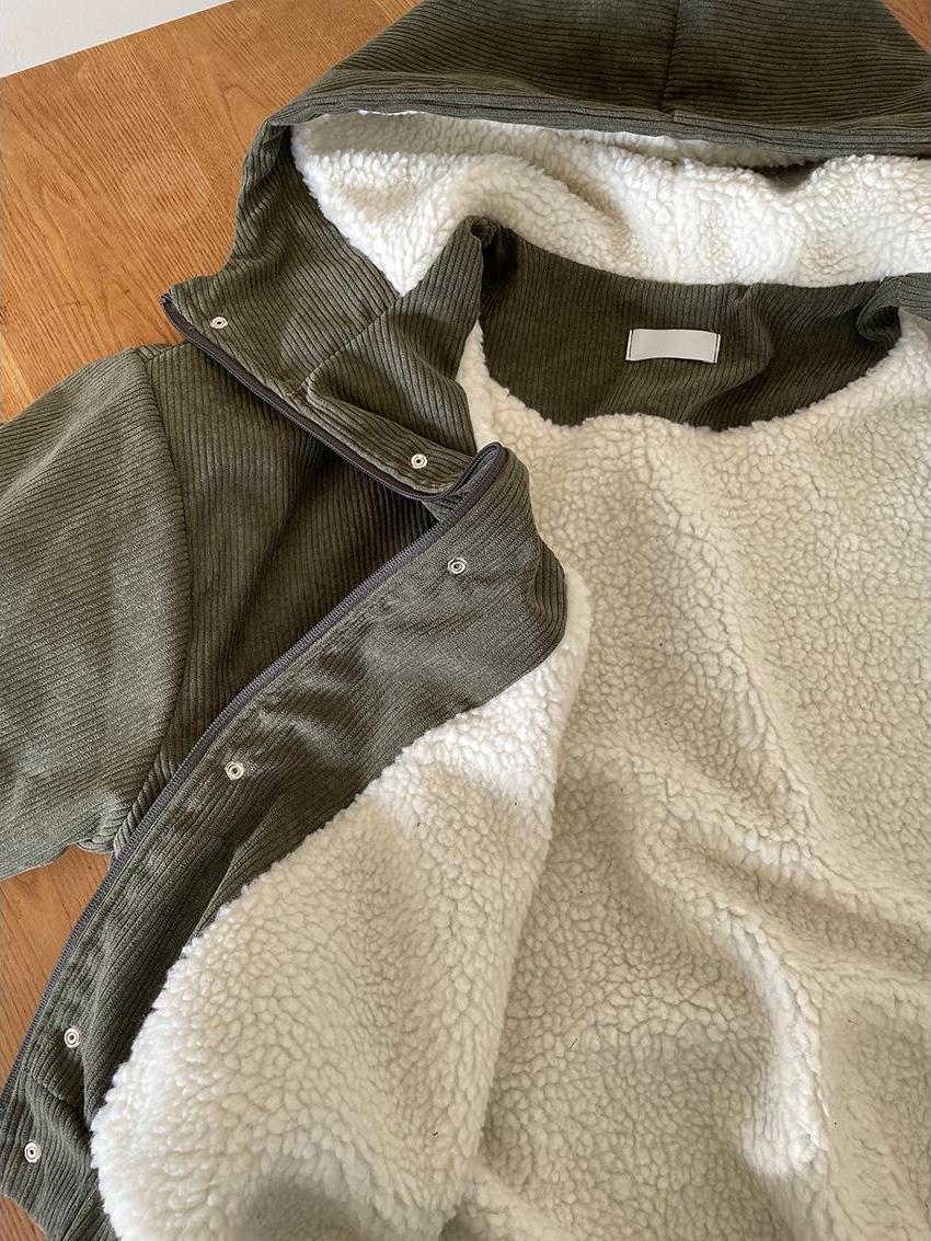 。這款燈芯絨材質的的刷毛連帽外套,擁有休閒感十足的剪裁!