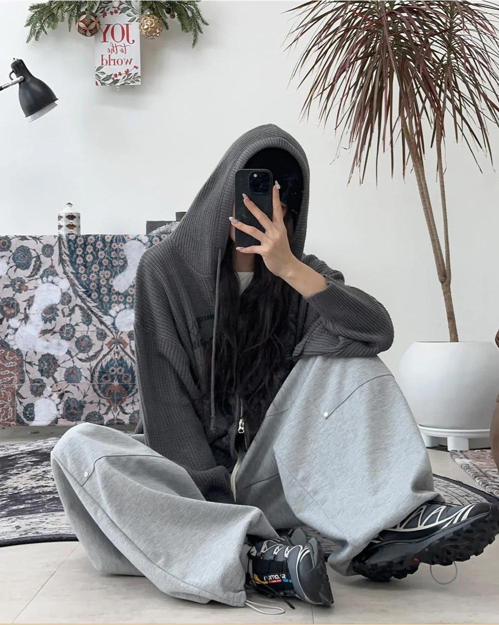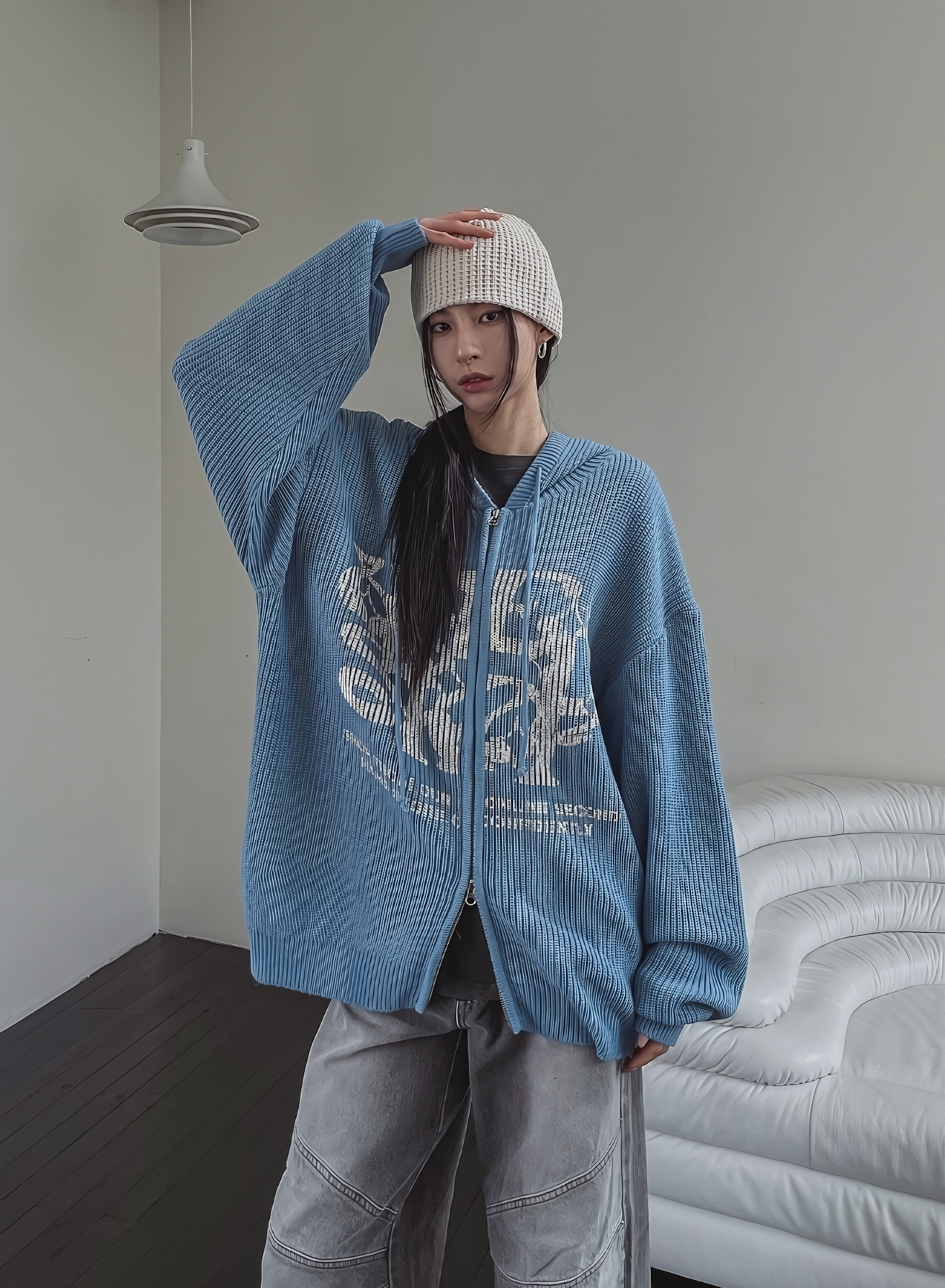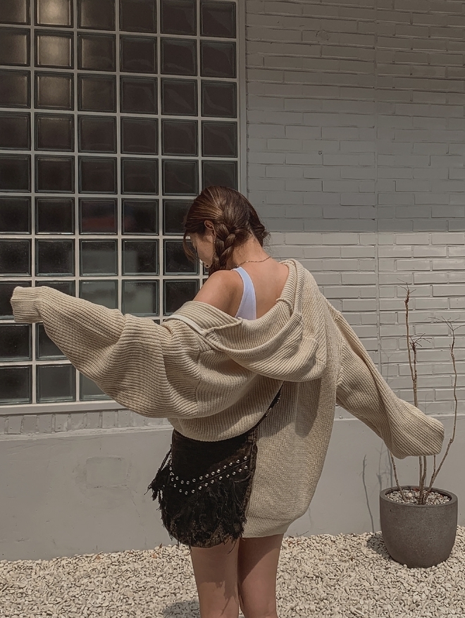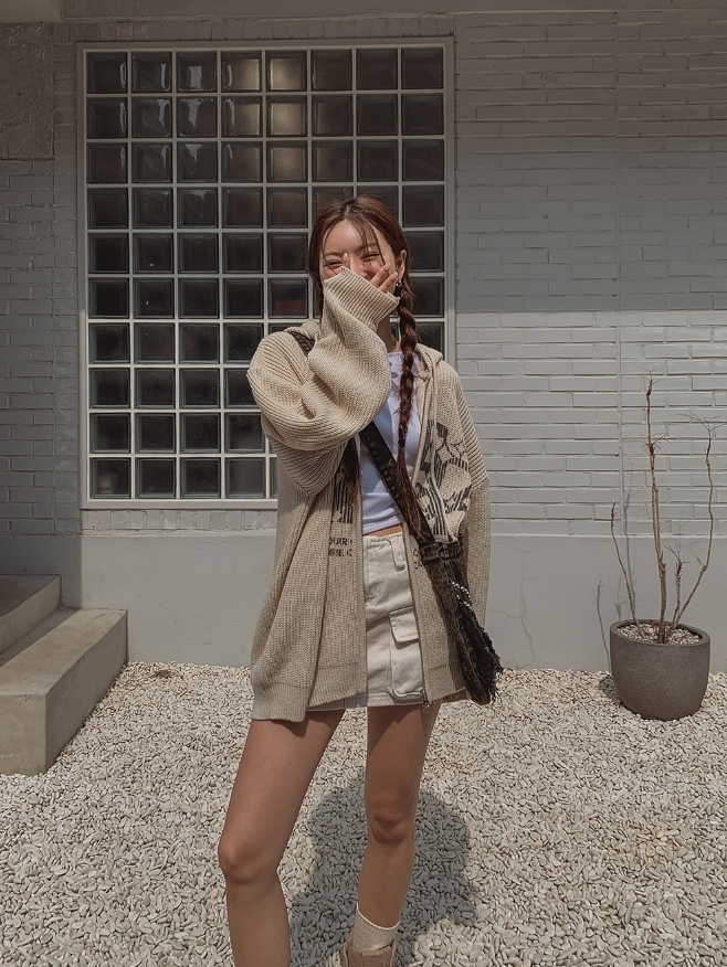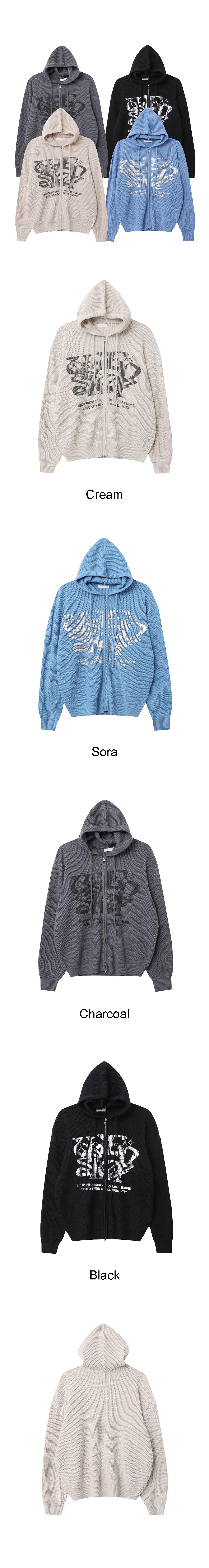 星星 字母印花 雙拉鍊 連帽 針織外套 / 4色