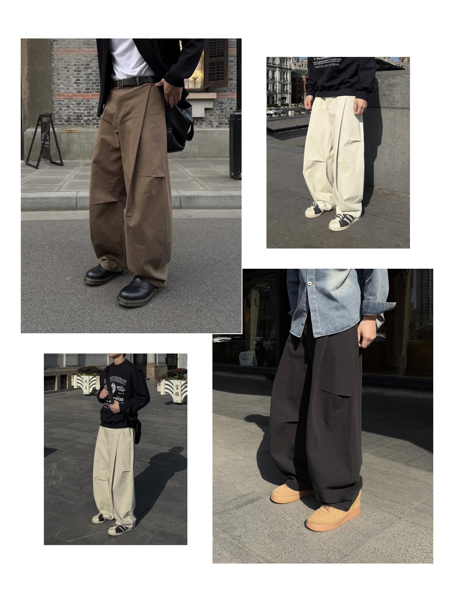 - 正面的單摺與降落傘褲設計,打造特別的造型