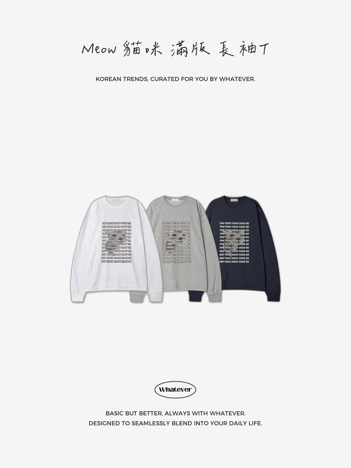 Meow 貓咪 滿版 寬鬆 長袖T / 3色