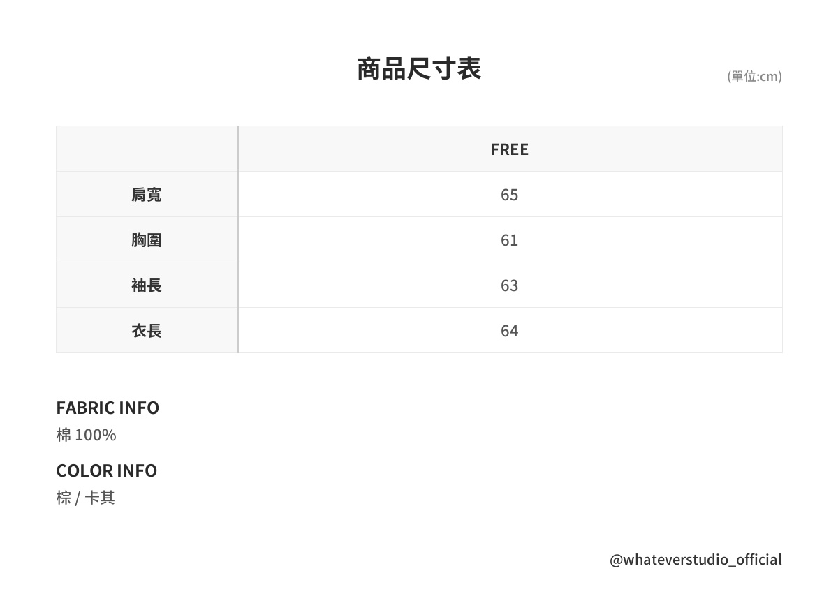 FREE : 肩寬 65 / 胸圍 61 / 袖長 63 / 衣長 64