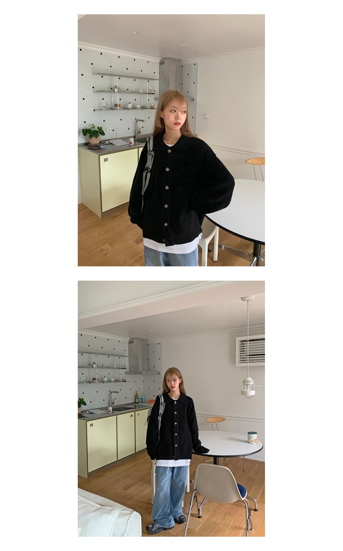 寬鬆 翻領 珍珠釦 針織 開襟衫 / 6色 - WHATEVER STUDIO