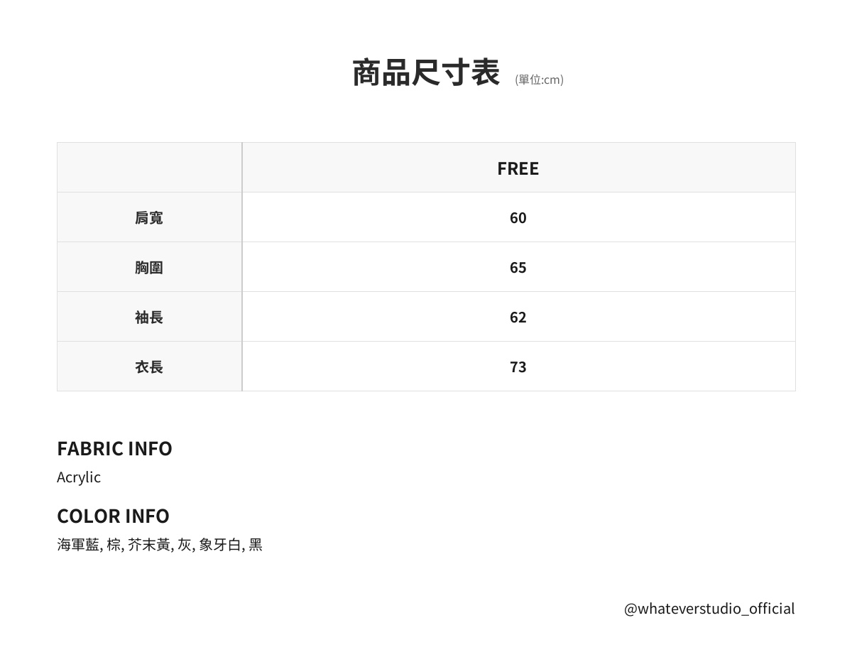 FREE : 肩寬 60 / 胸圍 65 / 袖長 62 / 衣長 73