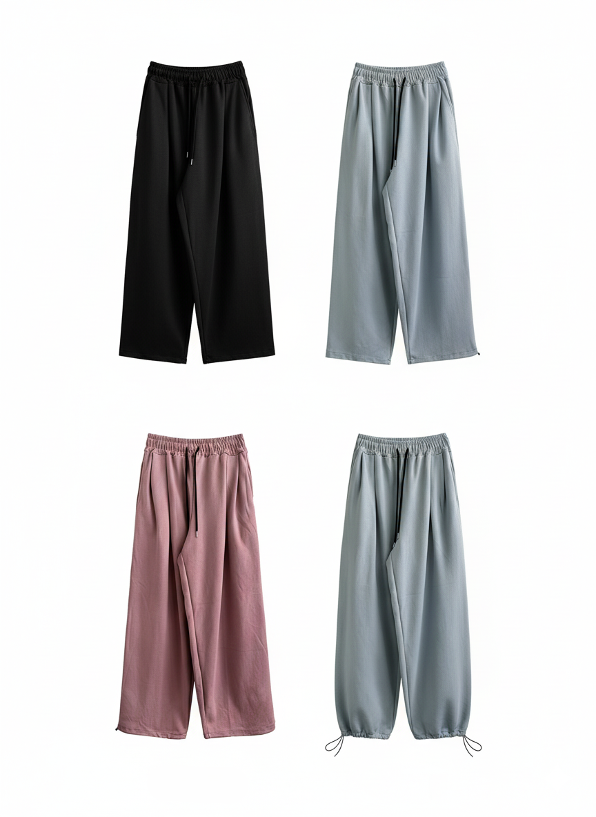 下擺有可調式束口(可變化成束腳或寬口版型)